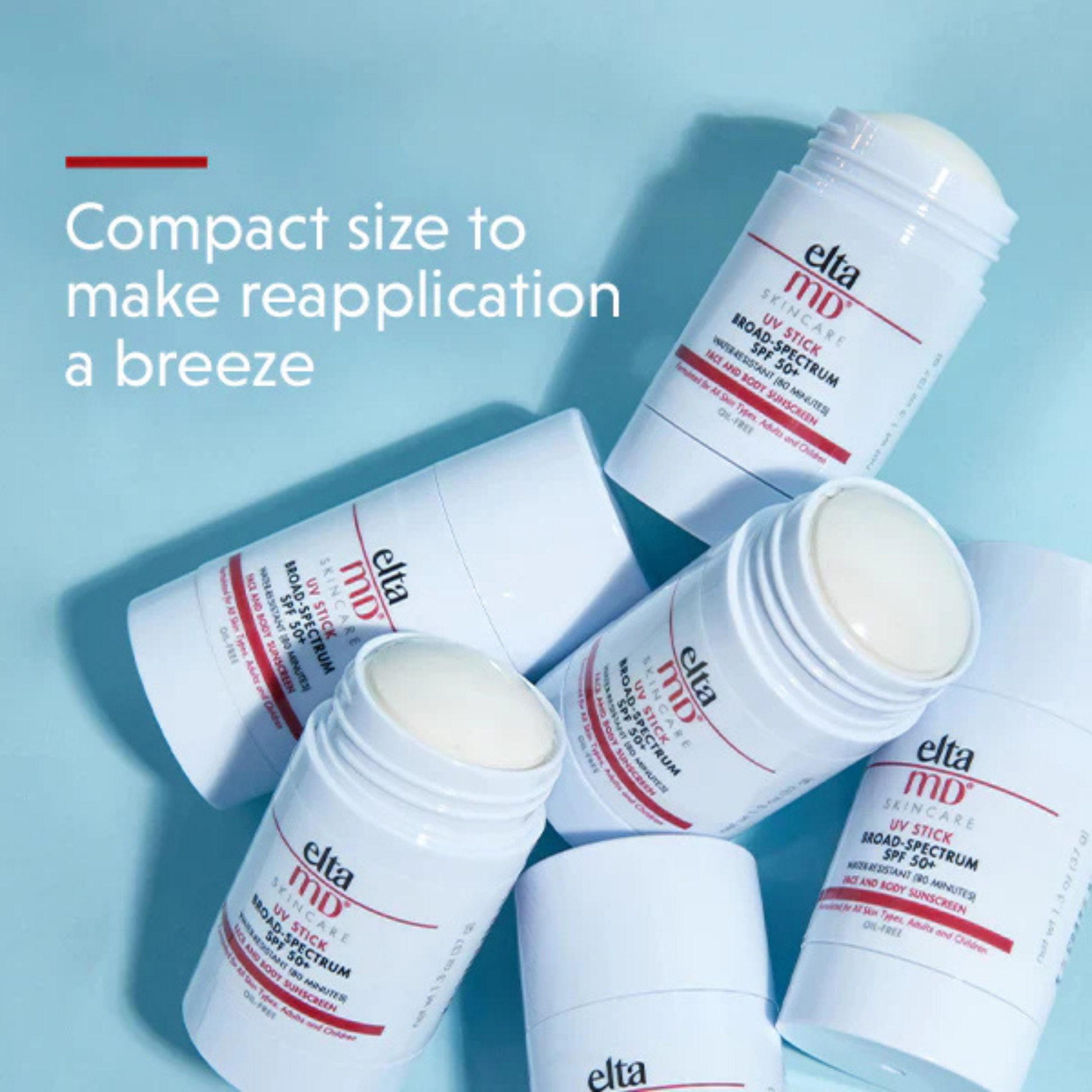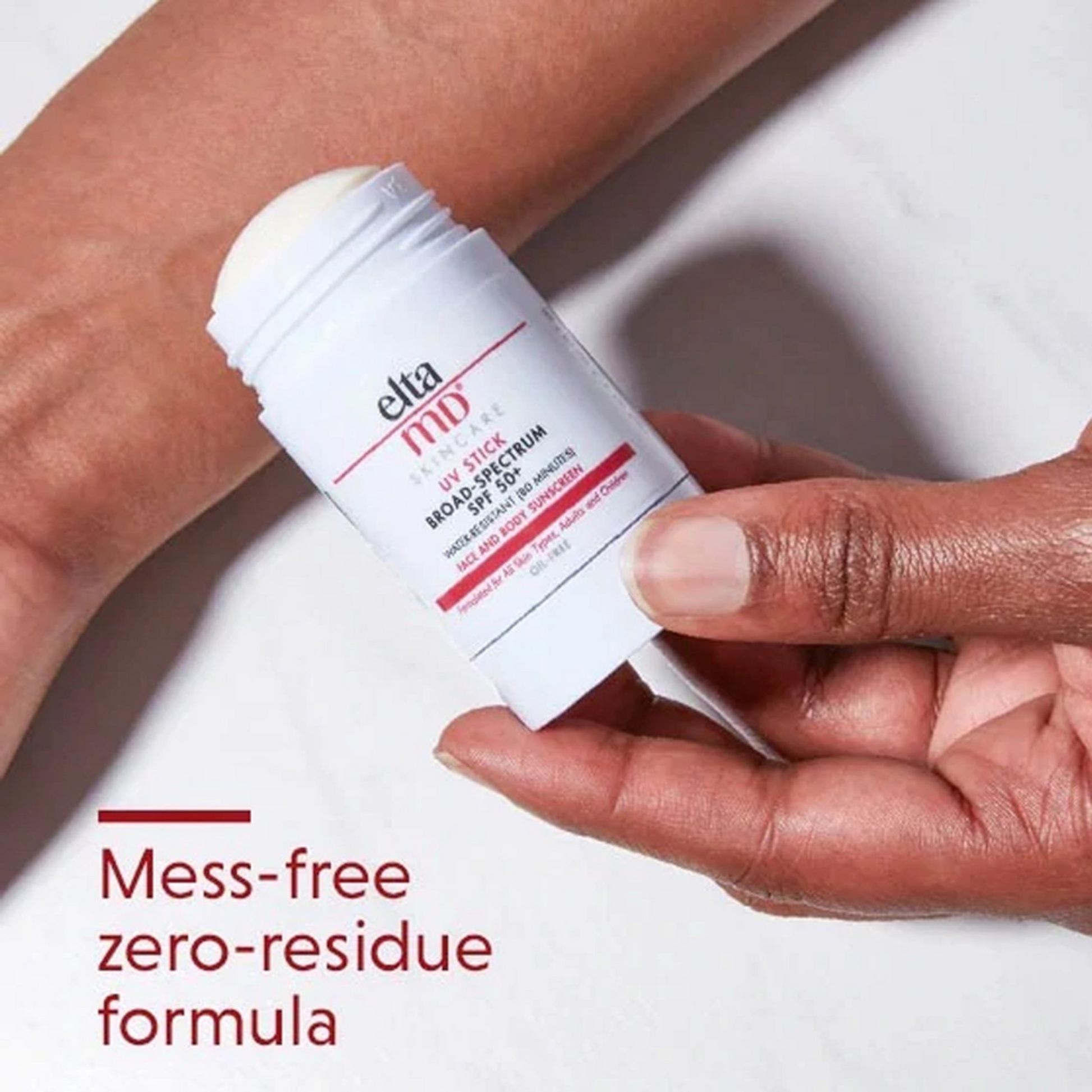 EltaMD® UV Stick Broad-Spectrum SPF 50+ is an on-the-go sunscreen essential suitable for all skin types. Up to 80 minutes water-resistant, this mineral SPF 50 formula can be applied on your face and body. Works with all skin tones to provide broad-spectrum and antioxidant protection without leaving a white cast.