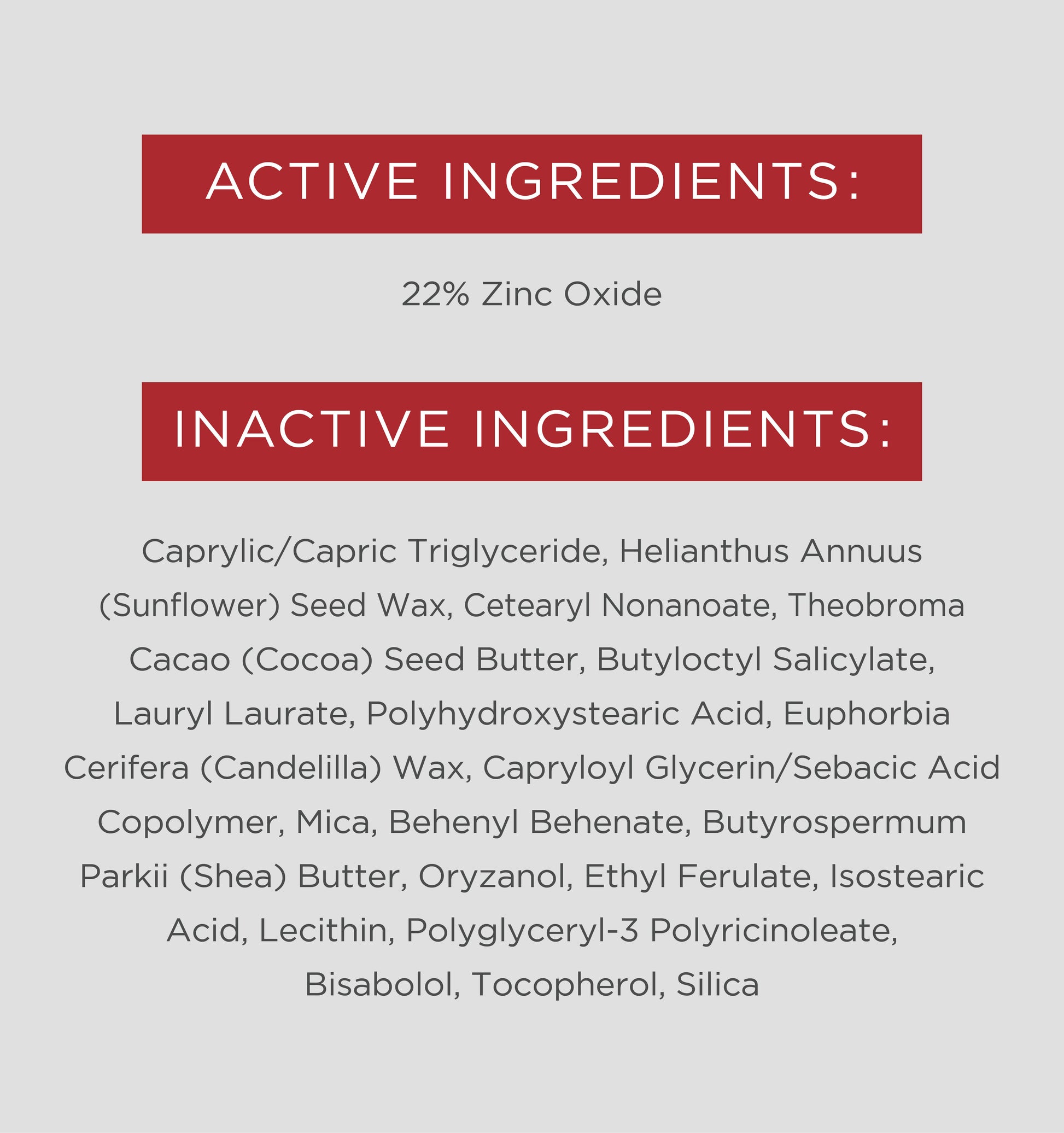Zinc Oxide aids against the UVB and UVA rays while Vitamin E and Antioxidants fight signs of aging and pack in moisture.