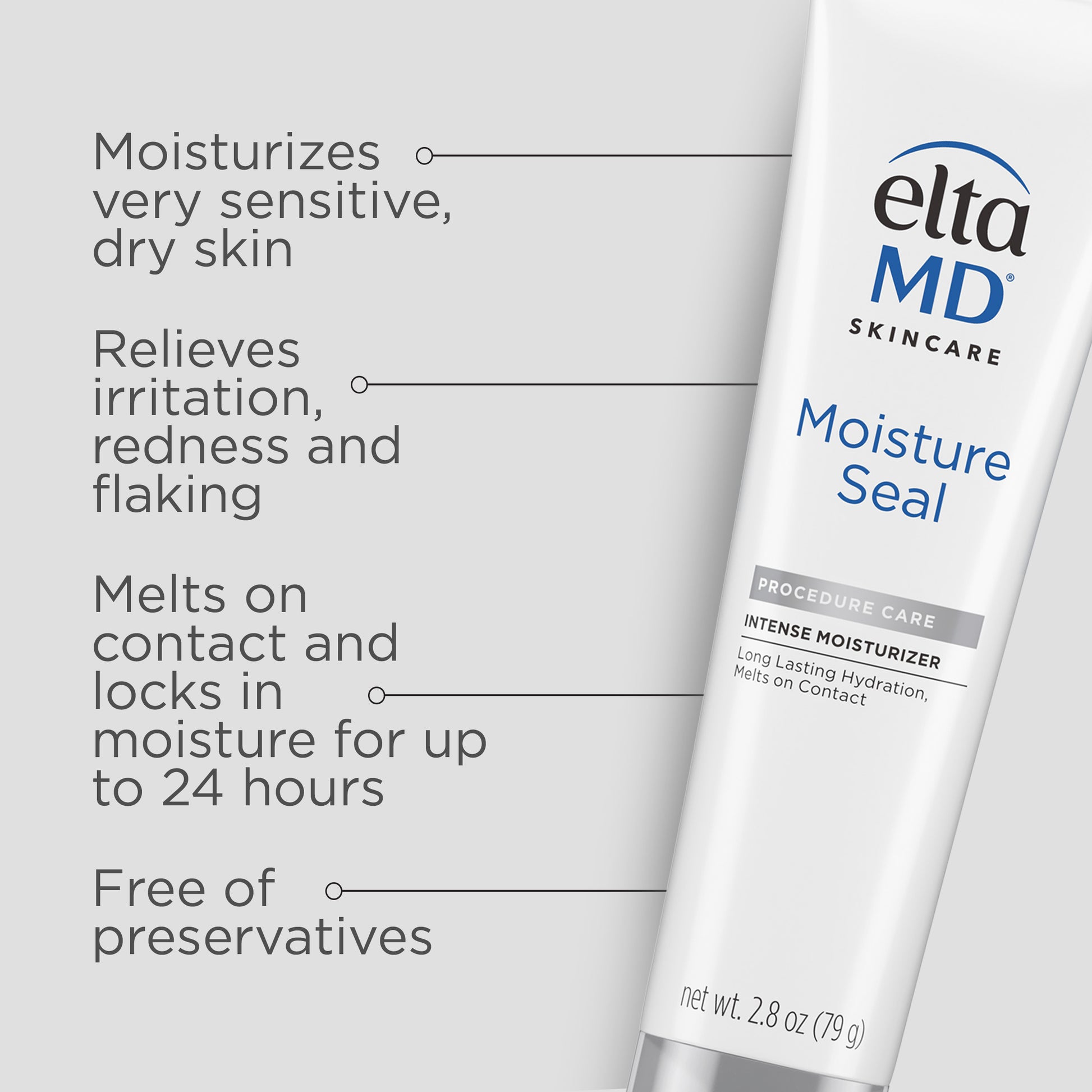 EltaMD® Moisture Seal melts on contact and retains 90% of skin’s moisture for at least 12 hours. It applies easily and gently to avoid disturbing tender, irritated skin. This intense occlusive moisturizer absorbs deeply soothe inflamed, irritated, flaky, post-procedure skin.